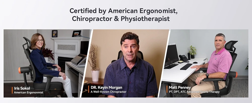 La qualità della NEWTRAL MagicH-BP è confermata da professionisti del settore medico e posturale. Tra gli esperti che raccomandano questa sedia figurano Iris Sokol, ergonomista americana, il Dott. Kevin Morgan, chiropratico di fama internazionale, e Matt Penney, fisioterapista di Advanced Sports Therapy.