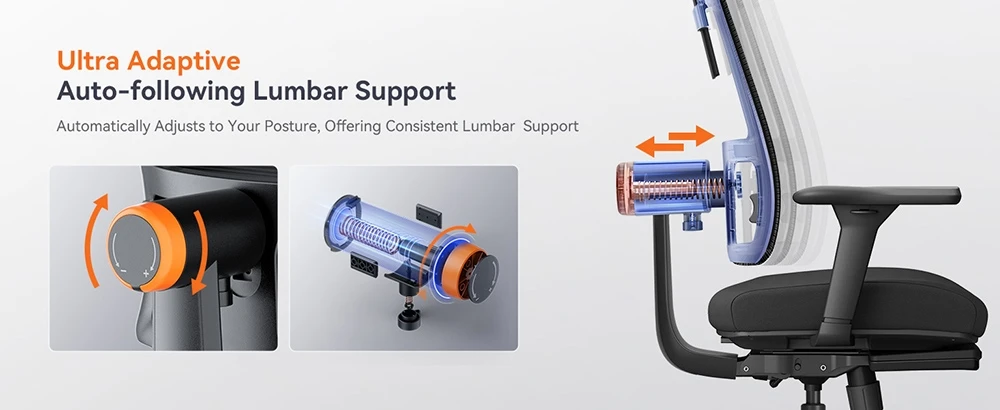 Supporto lombare regolabile su 4 posizioni per bloccare il livello di pressione più confortevole.